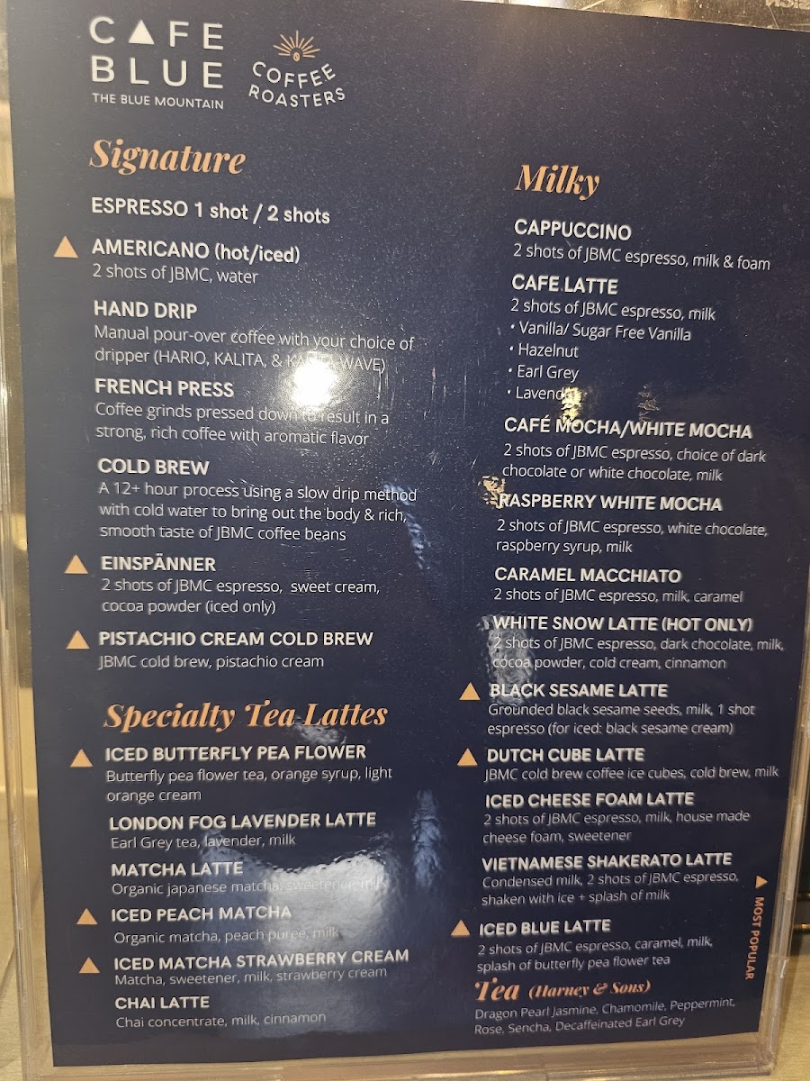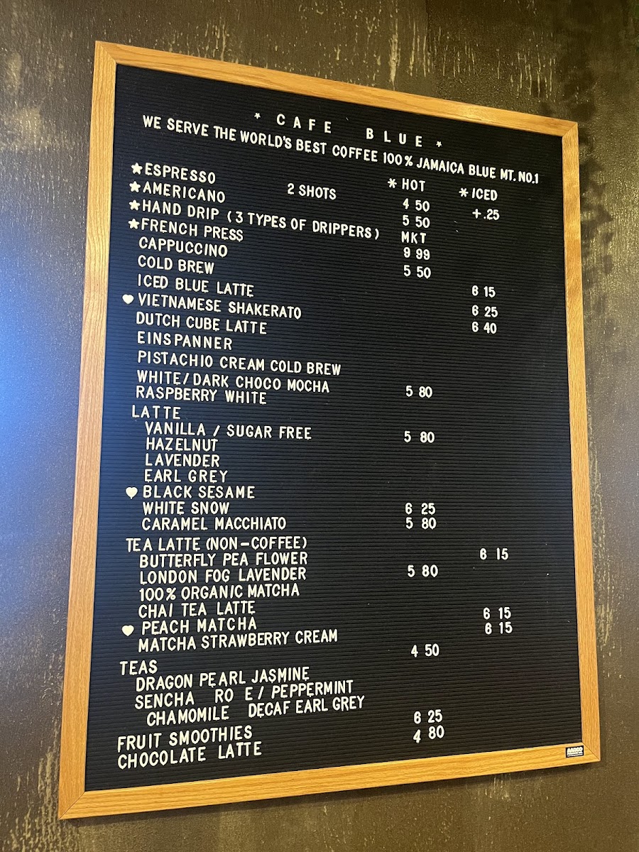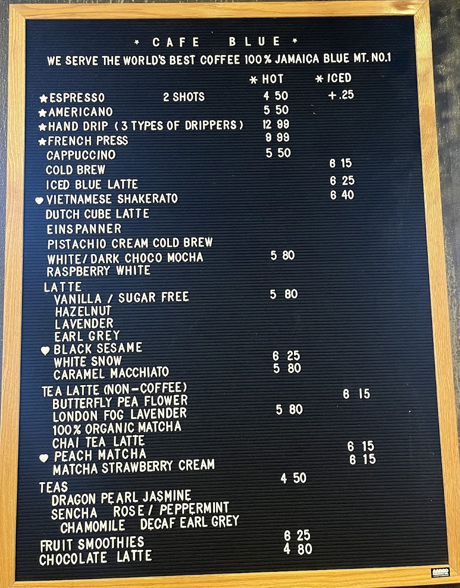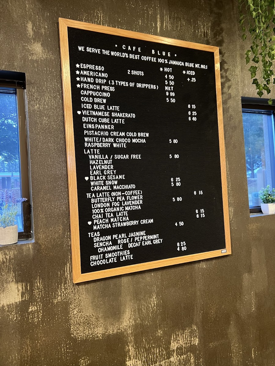 Cafe Blue offers a simple yet thoughtfully crafted menu, perfect for those seeking casual bites and comforting drinks throughout the day. Whether you’re stopping by for a morning pick-me-up or a relaxed afternoon break, you’ll find a selection of fresh smoothies, baked goods, and carefully prepared matcha beverages to enjoy.